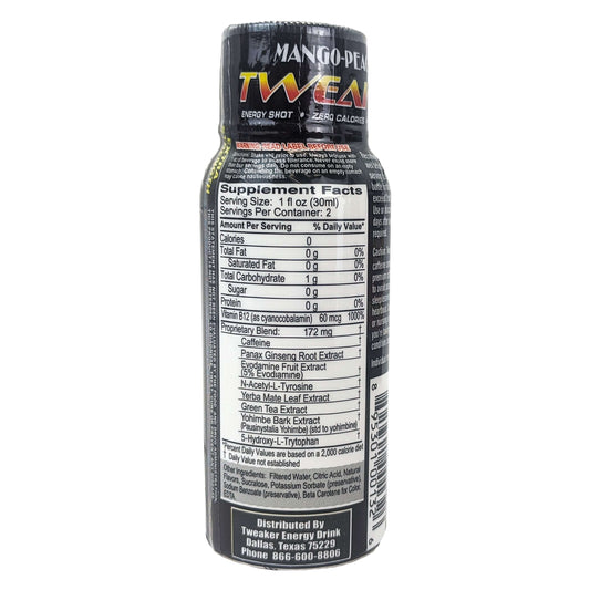 Tweaker 2oz Extra Strength Energy Shots, Box of 12, Mango-Peach Flavor